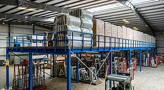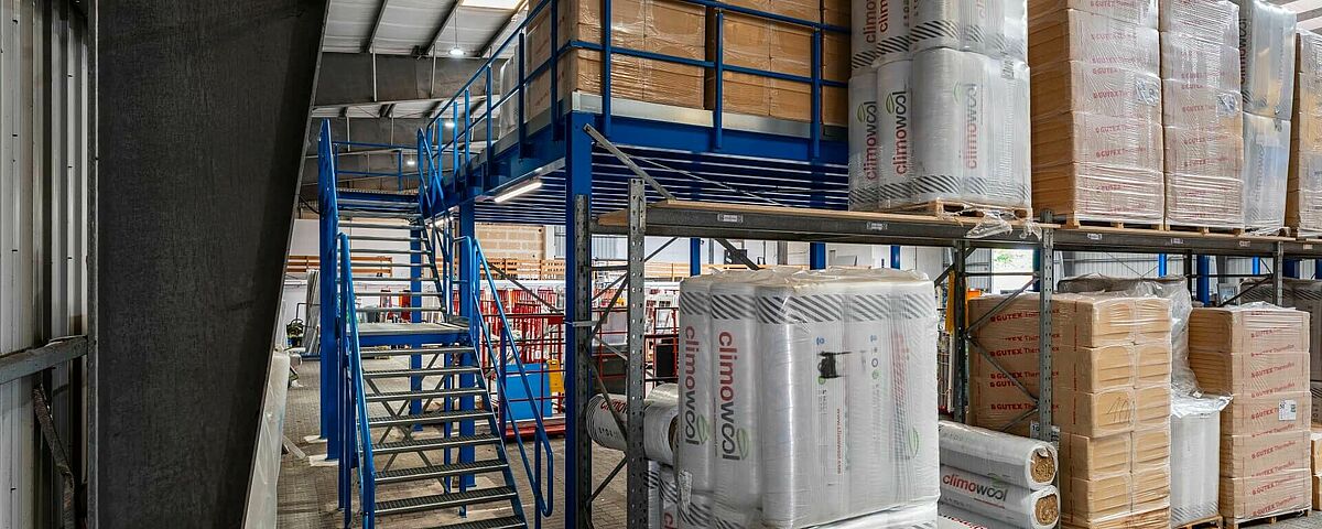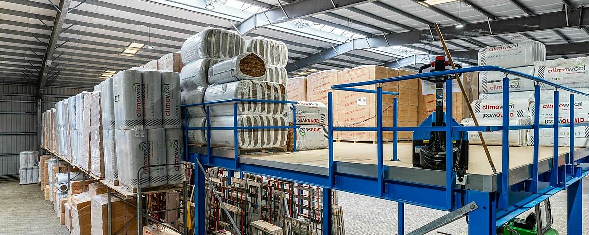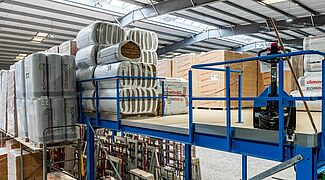 L’entreprise familiale FRIES, un des leaders dans la vente en gros de bois et de revêtements de sol en Allemagne, a véritablement donné une toute nouvelle dimension à la logistique dans sa centrale de Kiel : grâce au montage d’une plateforme, l’entreprise peut maintenant exploiter pleinement la hauteur au sol dans l’usine actuelle. On trouve désormais au deuxième niveau avec une hauteur de 3,8 mètres, une surface utile d’environ 270 mètres carrés, sur laquelle sont stockées des palettes volumineuses avec du matériau isolant en bloc. Et au-dessous de celui-ci, il y a de la place pour un nouvel espace de travail - la construction d’une usine supplémentaire n’est donc plus nécessaire.